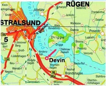 Autobahn A20 über Grimmen, Abzweig Rügen / Stralsund - Autobahnzubringer B96, Abzweig Stralsund Devin, 2 Ampelkreuzung rechts - Richtung Real und Bauhaus, danach gleich Hauptstrasse rechts abbiegen nach Devin, dann dem Strassenverlauf immer geradeaus folgen bis in den Ort Devin, Schulstrasse 2